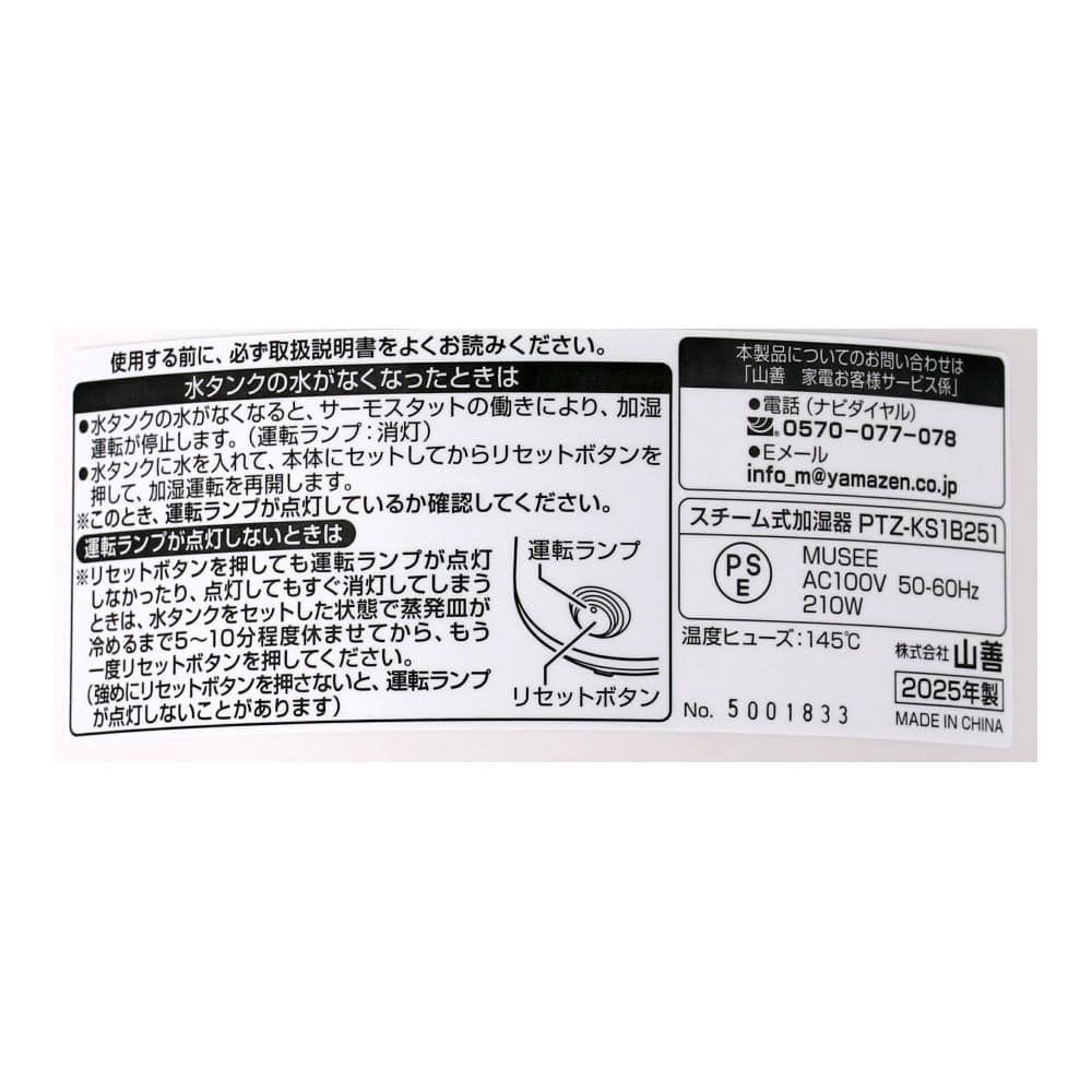 - > パーソナルスチーム式加湿器 PTZ-KS1B251(W)
