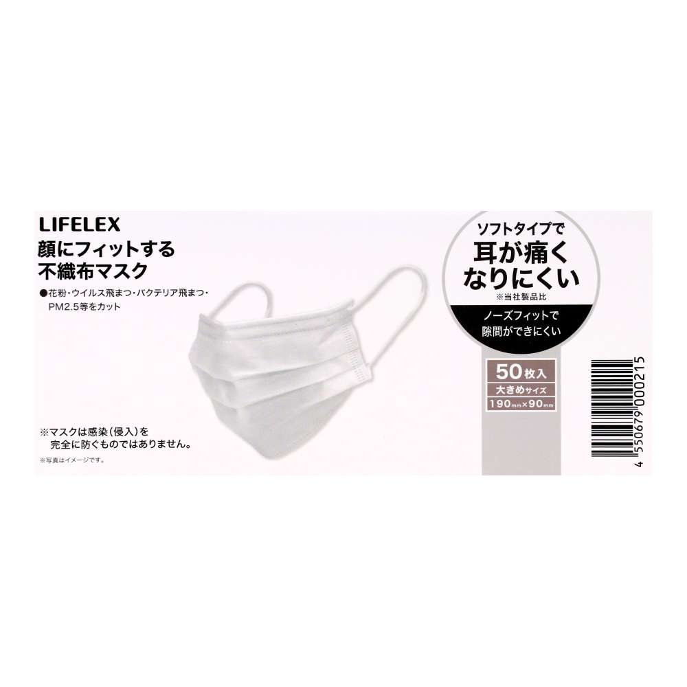LIFELEX 不織布マスク大きめ 50枚入り ホワイト