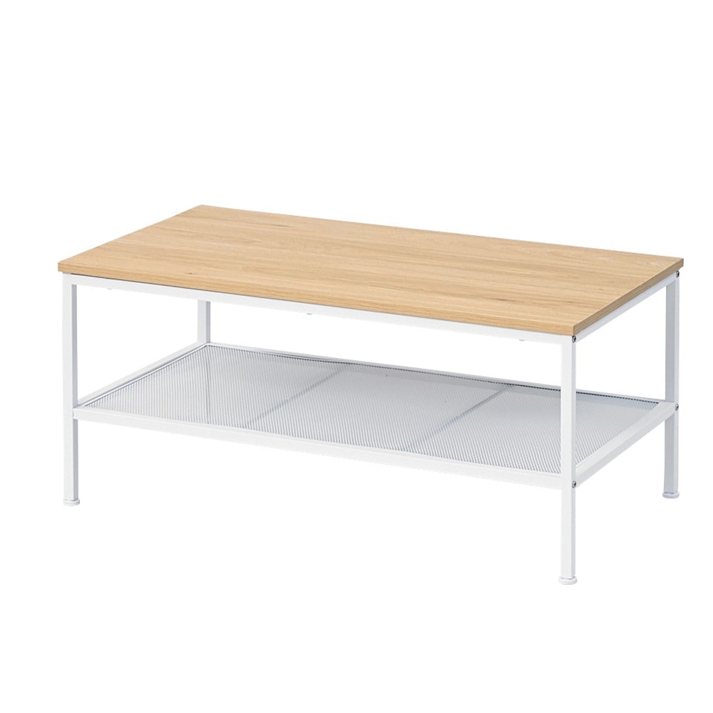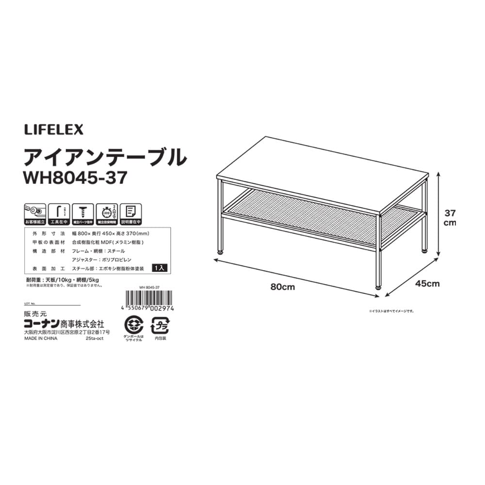 LIFELEX テーブル アイアンテーブル ホワイト ロータイプ 木目調 高さ37 コーヒーテーブル センターテーブル 収納付き