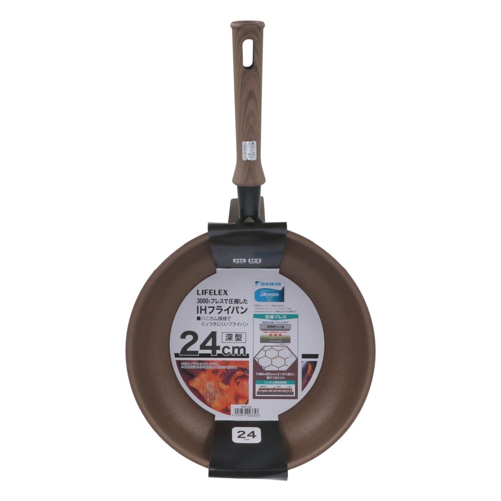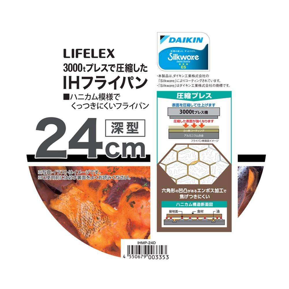 LIFELEX 3000tプレスで圧縮したIHフライパン24cm深型 IHMPー24D メタリックブラック