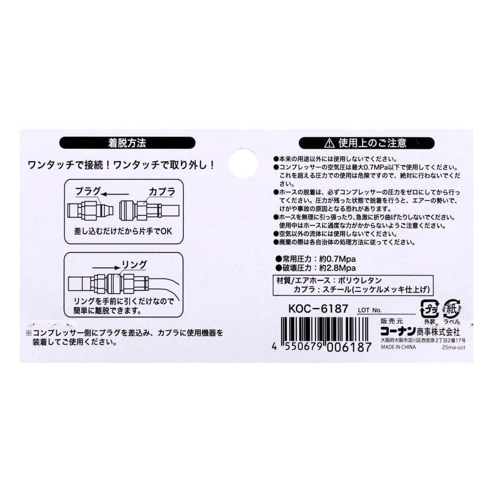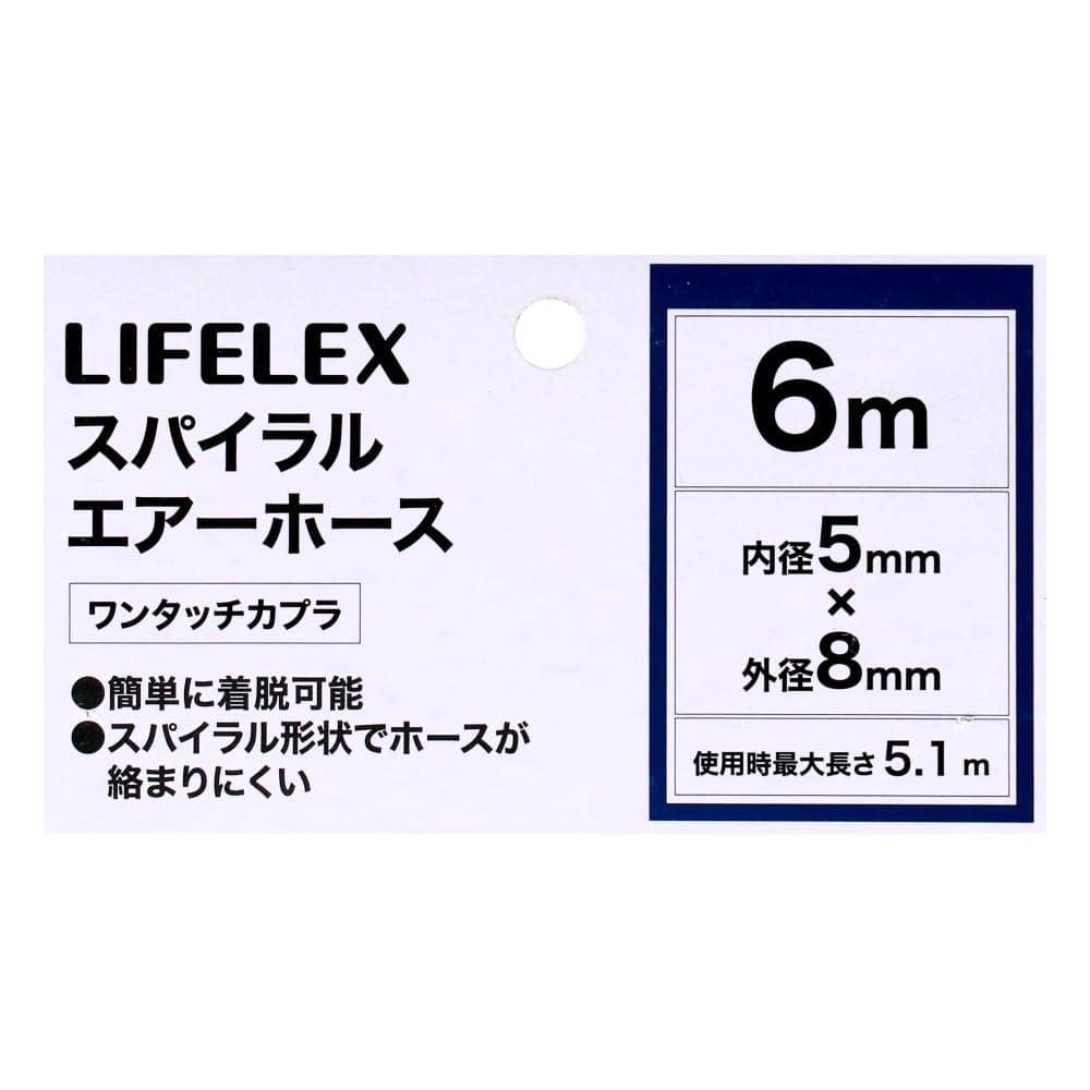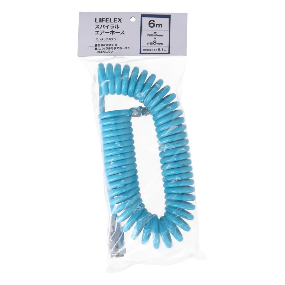 LIFELEX スパイラルエアホース6M ワンタッチカプラ付 ブルー
