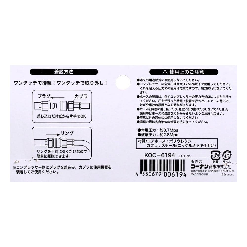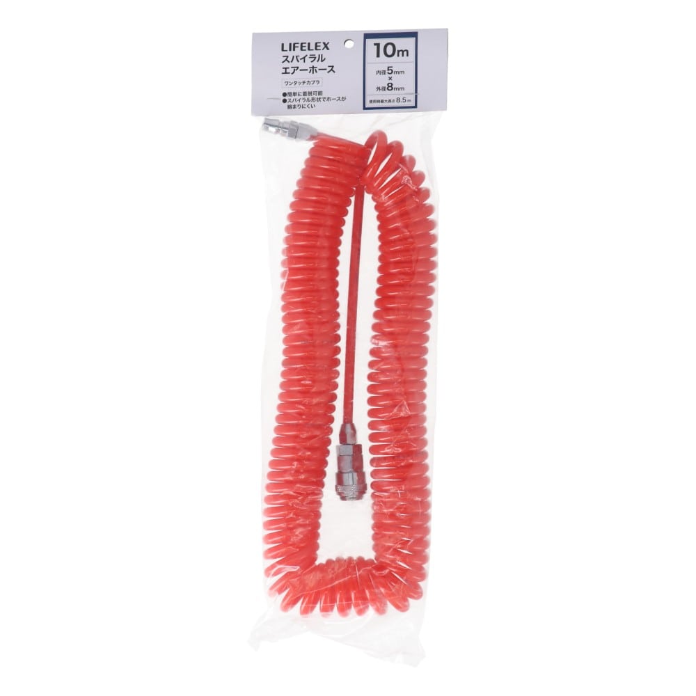 LIFELEX スパイラルエアホース10M ワンタッチカプラ付 オレンジ