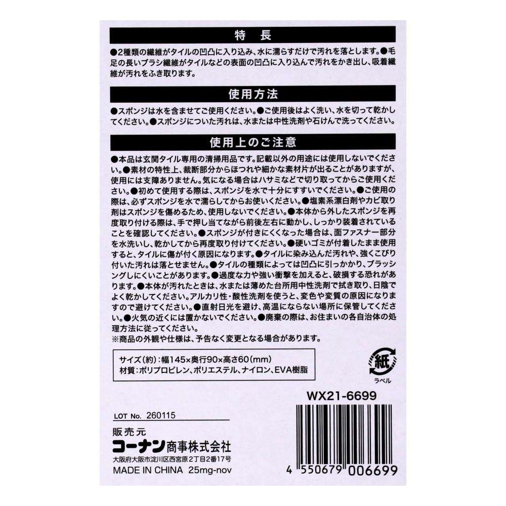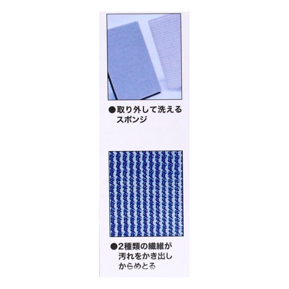 ●毛足の長いブラシ繊維がタイルなどの表面の凹凸に入り込んで汚れをかき出し、吸着繊維が汚れをふき取ります。