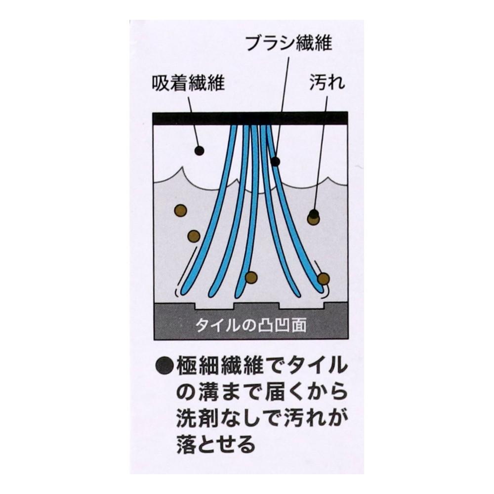●2種類の繊維がタイルの凹凸に入り込み、水に濡らすだけで汚れを落とします。