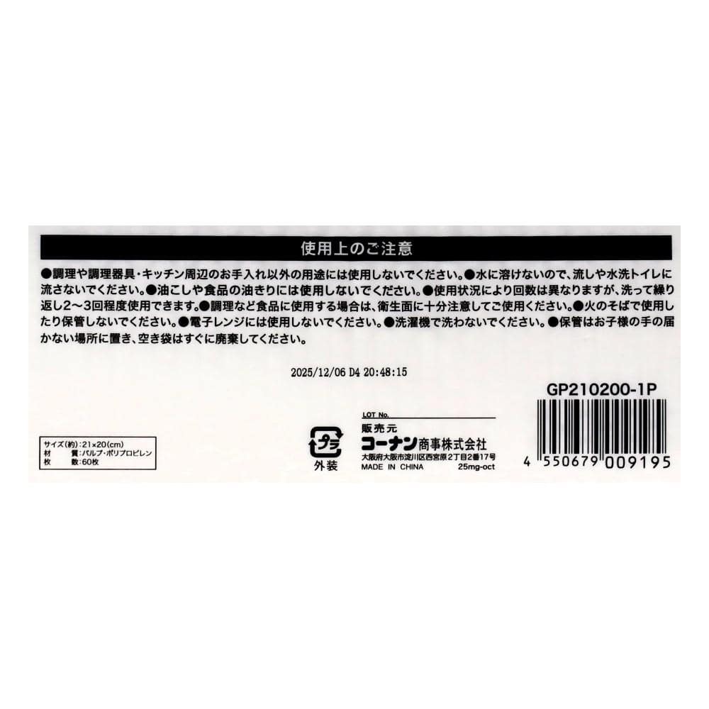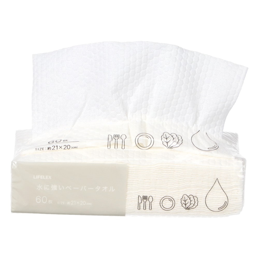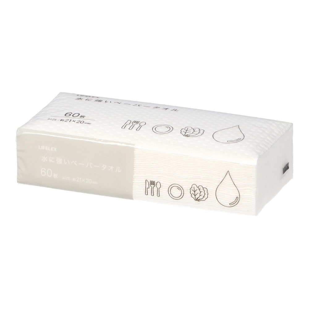 LIFELEX 水に強いペーパータオル 60枚入りパックタイプ GP210200-1P ホワイト