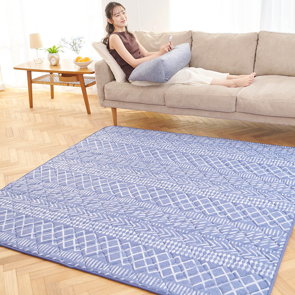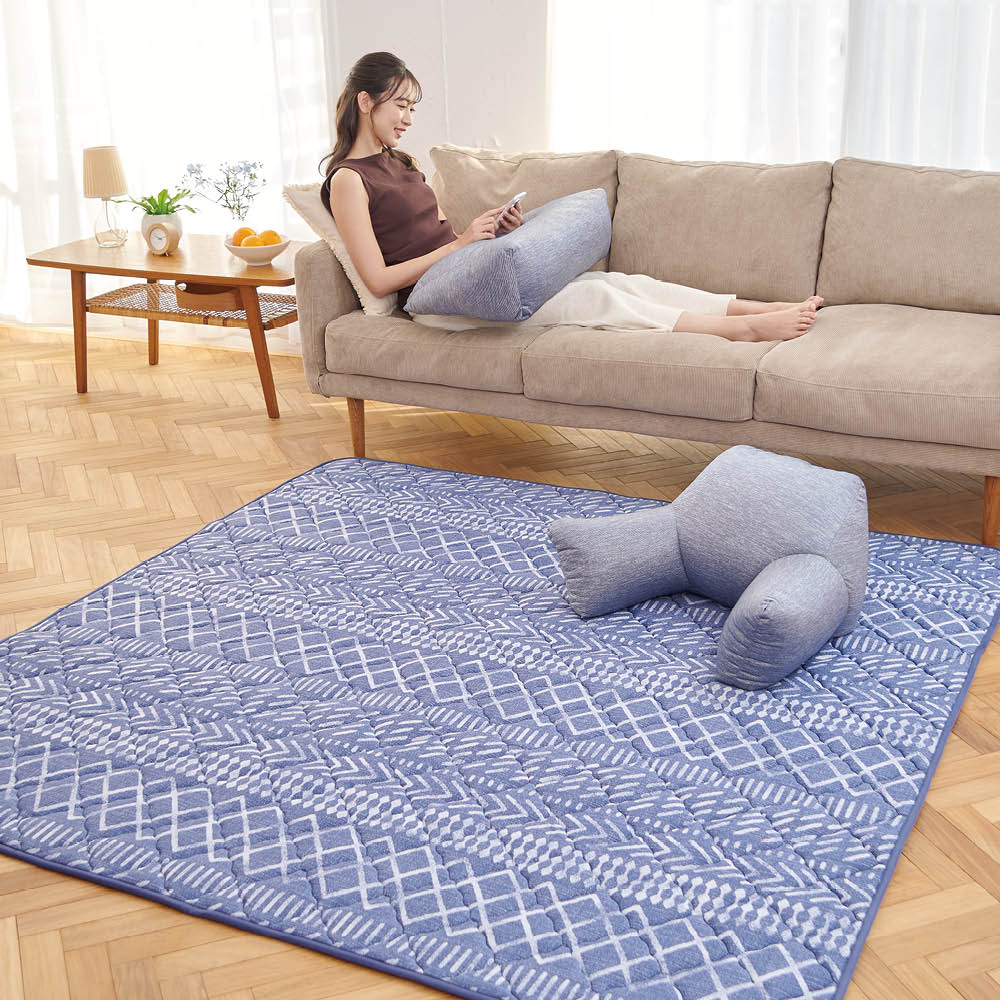 LIFELEX 洗える強冷感制菌防臭キルトラグ 約90x185cmキリム2ネイビー
