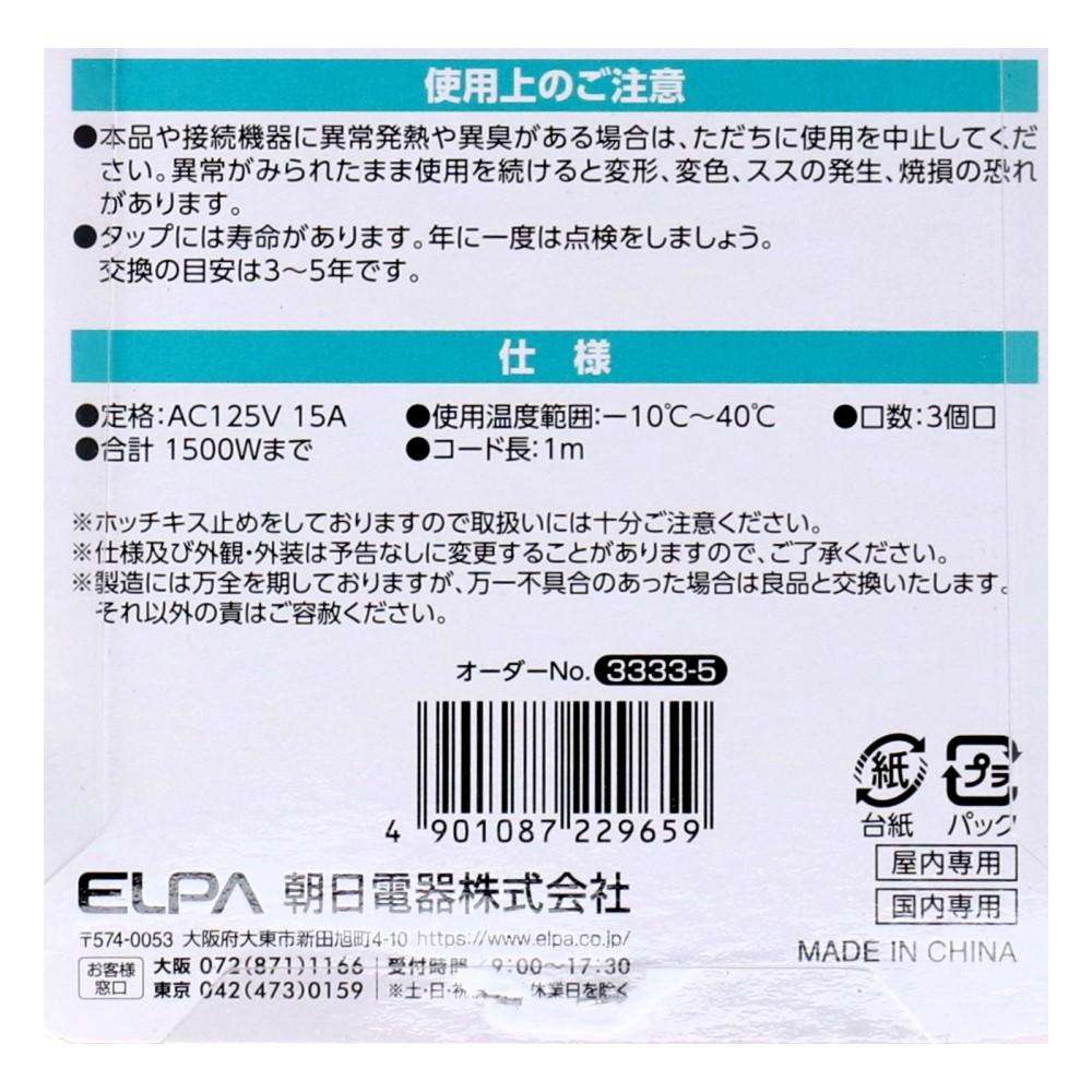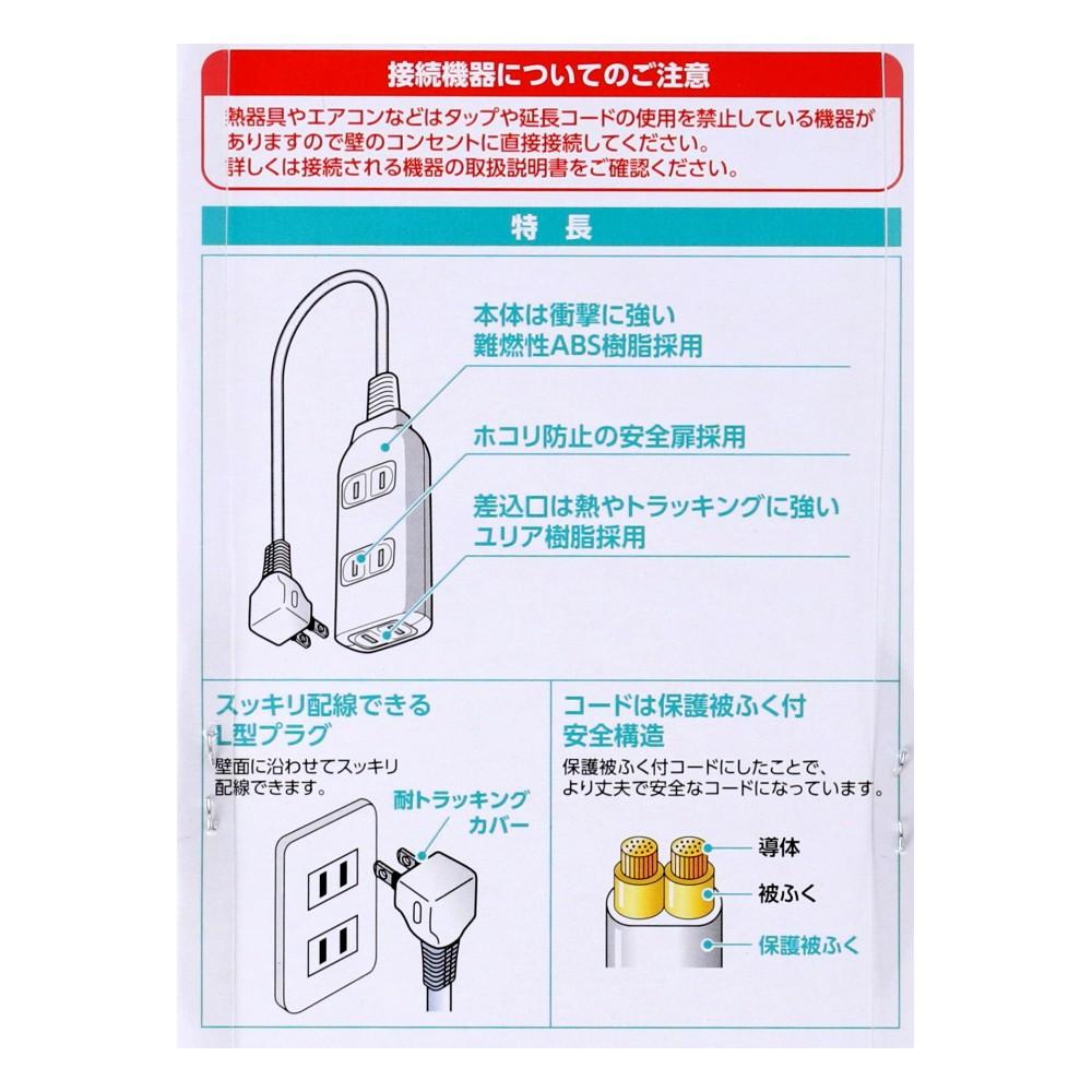- > 朝日電器 扉付タップ1m黒AC3口 TAT-N0310B