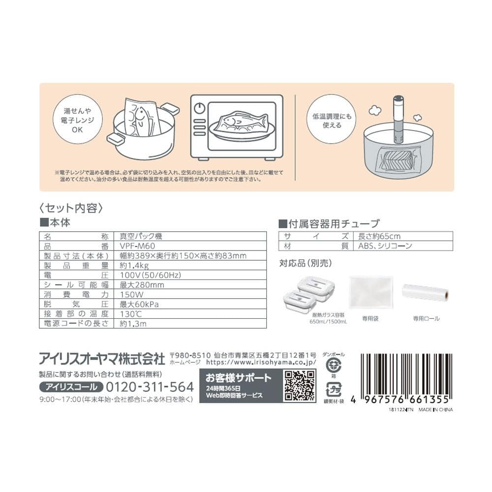 アイリスオーヤマ 真空パック機 ロール内蔵タイプ VPF-M60
