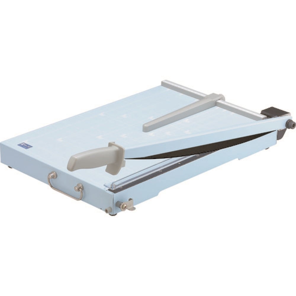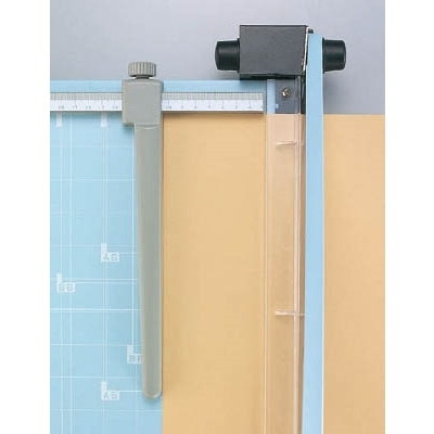 ●紙押さえ、ハンドルロック、指定の寸法に裁断できる縦ガイド付です。