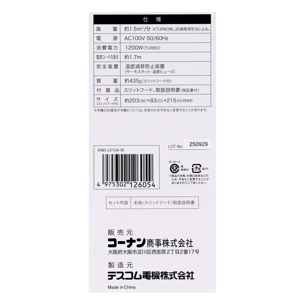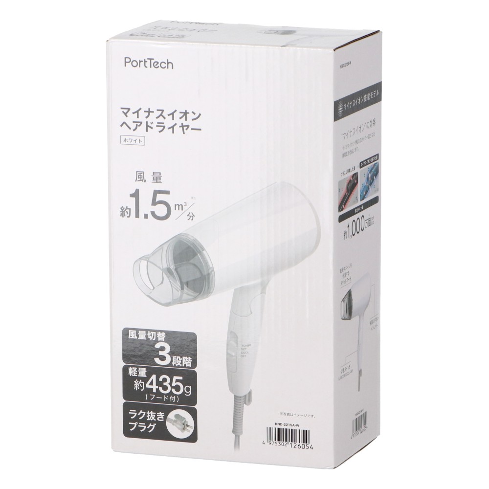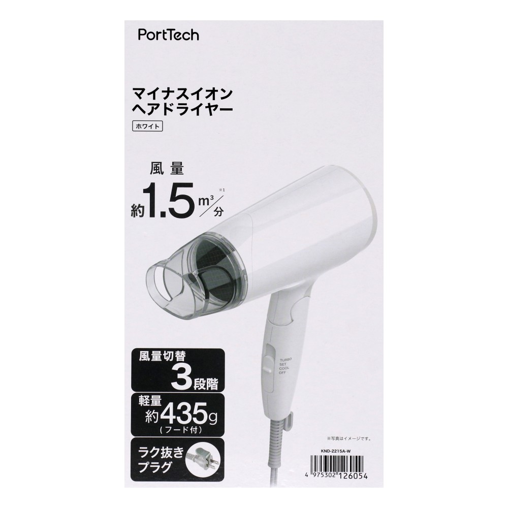 PortTech マイナスイオンドライヤー KND-2215A-W ホワイト