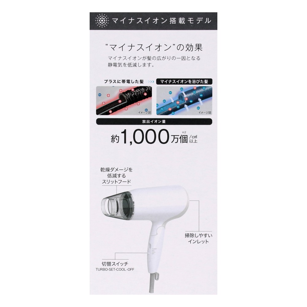 ●マイナスイオンが髪の広がりの一因となる静電気を低減します。