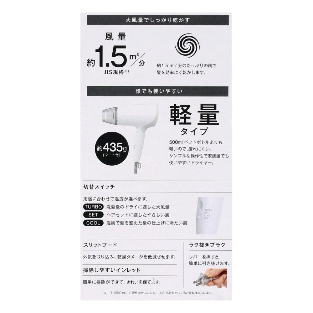 ●500mlのペットボトルよりも軽いので、疲れにくい。シンプルな操作性で家族誰でも使いやすいドライヤー。