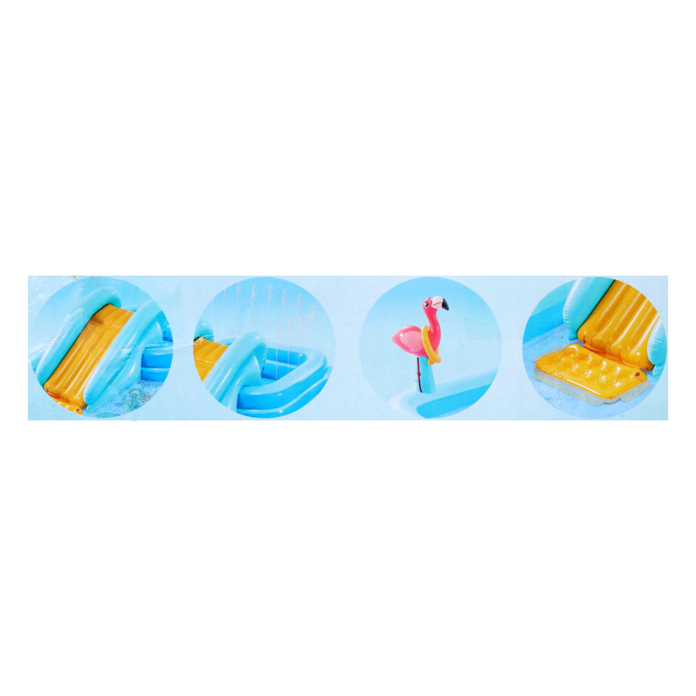 ●滑り台、ヤシの木、フラミンゴ、サル、輪投げ、5つのボール付き。