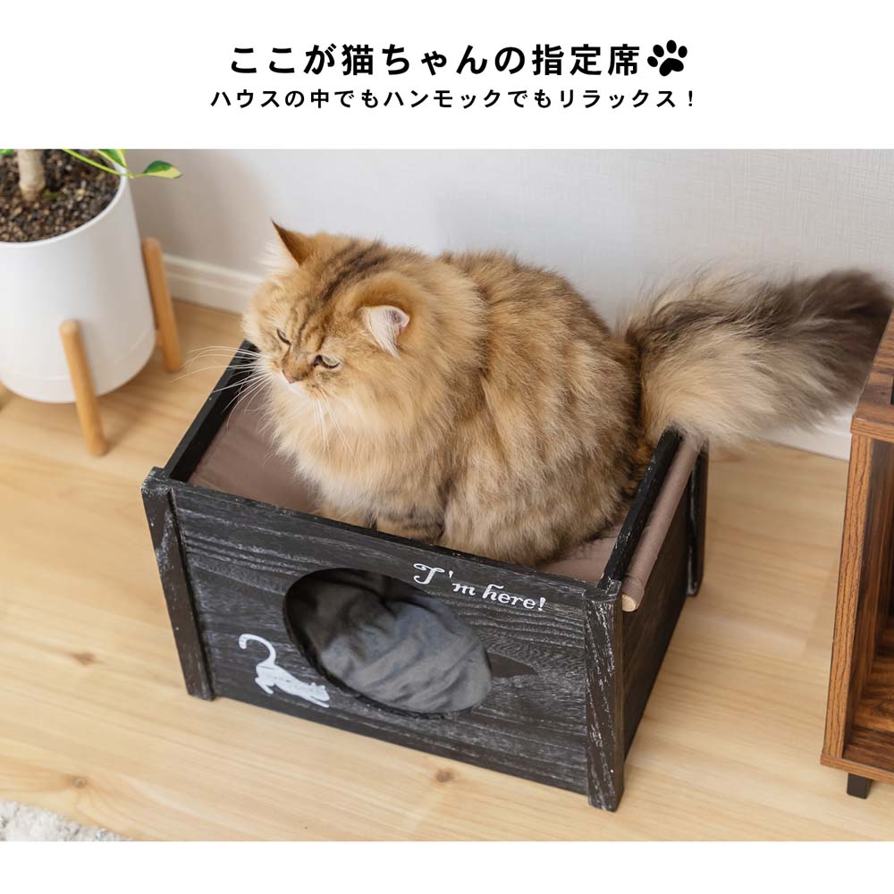 箱状のものや、狭い場所に入りたがる習性がある猫。そんな猫の本能をくすぐるペット用ハウスです。中に入って隠れたり、一番上のハンモックに乗ったりと、猫が快適に過ごせます。3段まで積み重ね可能で、カラーボックスにぴったりのサイズ。ナチュラルな色合いで、置くだけでお部屋になじむのもうれしいポイントです。