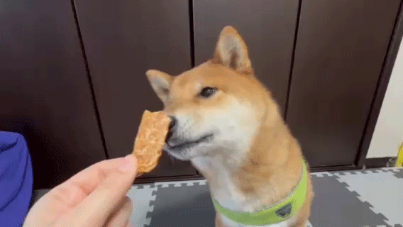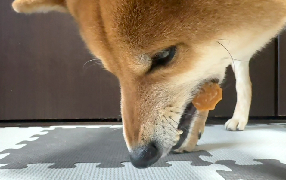 おやつに夢中で、お手がずれているんだけど!!