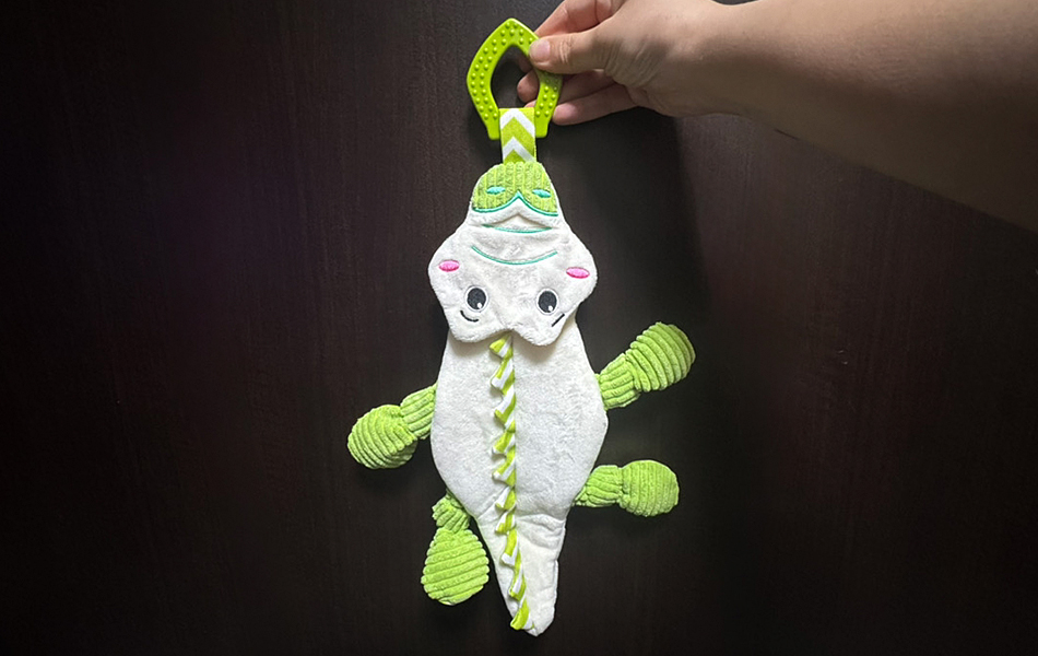 そして、ワニさんなのにカンガルーみたいにお腹におやつを隠せる袋があるんです!