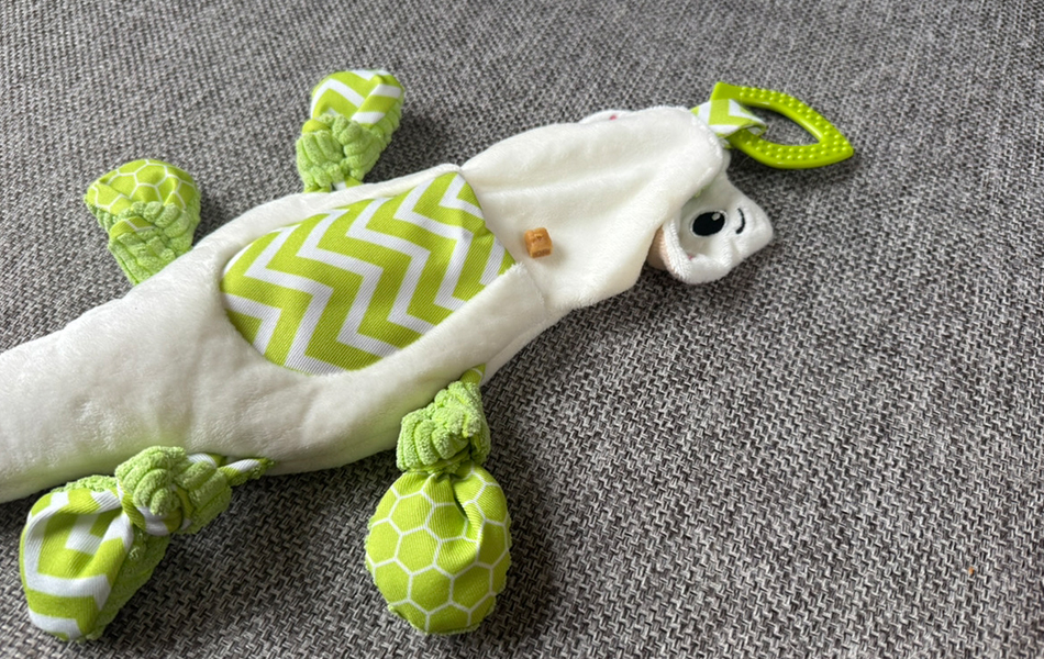 さらに、ワニさんの後頭部にも!おやつを隠せる小袋が!!!