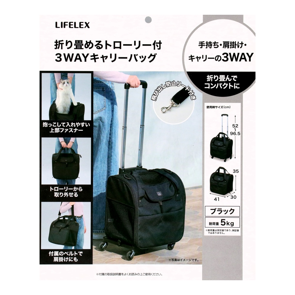 コーナン オリジナル 折り畳めるトローリー付 3WAYキャリーバッグ BI12-2529 ブラック