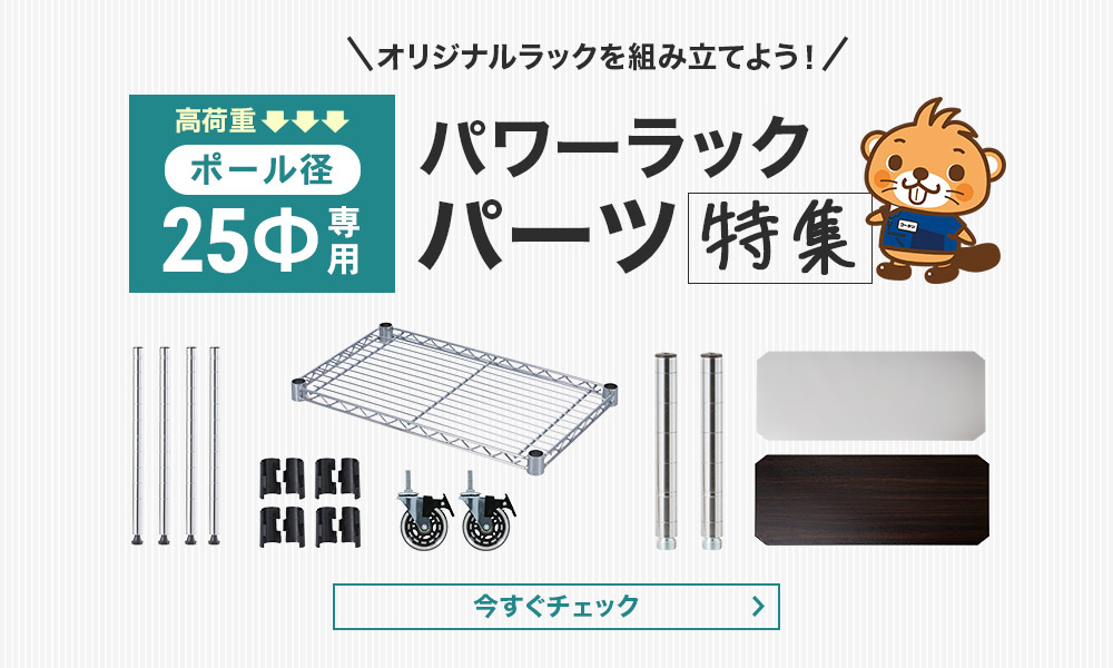 25φポールのシステムラックは、太く安定感のある支柱が特長で、耐荷重に優れています。