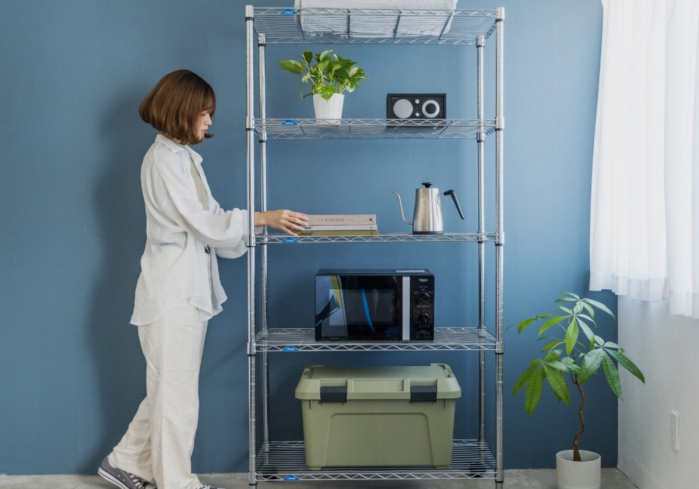 家電や収納ボックス、工具など、重量のあるアイテムも安心して収納できます。