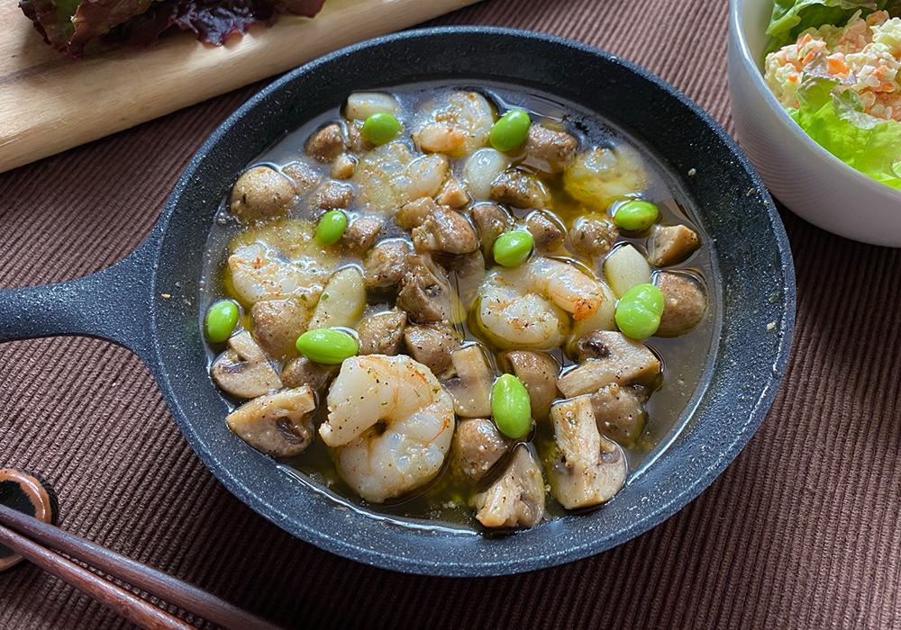 ピチピチッとオリーブオイルの音もして、美味しそうなアヒージョに!