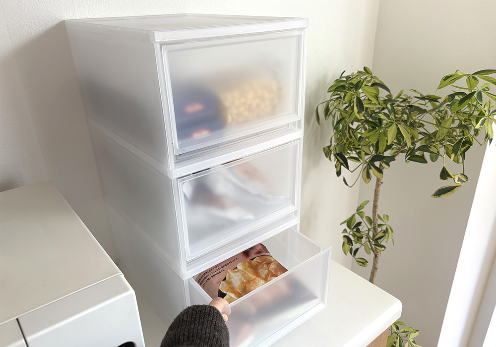 毎日出し入れする物を『見える化』できる!でも、見せたくないところは中身が見えないホワイトタイプも♪必要な分だけスタッキングして使えて、足りなければ追加できるから容量が増えても安心!深型・浅型などなど、種類がたくさんあるから用途に合わせて選べる&置ける。きっとあなたもお気に入りが見つかるはずです!・・・さぁて、お片付けも済んだことだし、ちょこっとおやつタイムにしようかな~♪